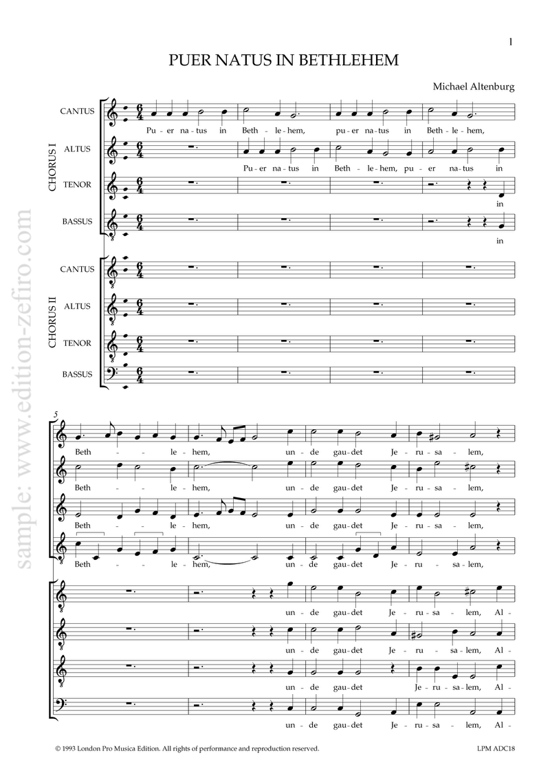 Altenburg sets three verses of the hymn, but each verse appears both in Latin and German and takes a slightly different approach, but the alleluias provide a constant element.