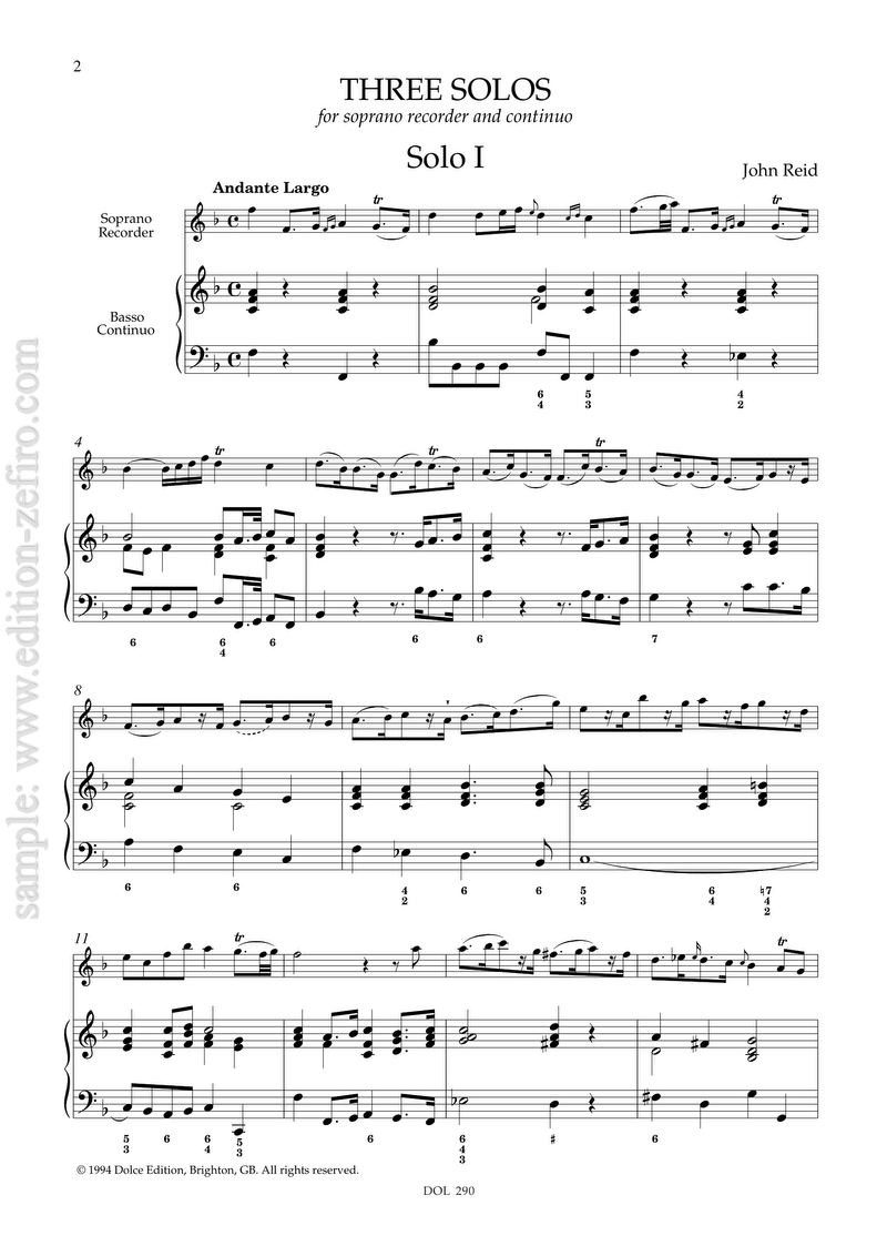 Category: Instrumental music. Tags: 1760, Alto recorder, Baroque, English, John Reid, Recorders, solo + continuo, Sonata.