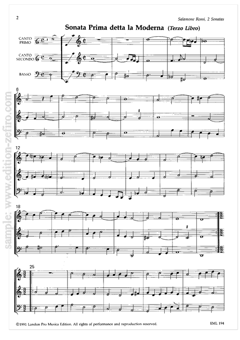 Categories: Instrumental music, Violin. Tags: 1610, 2 violins + Continuo, 3 part, Early Baroque, EML, Italian, Salamone Rossi, Sonata, SS + Continuo.