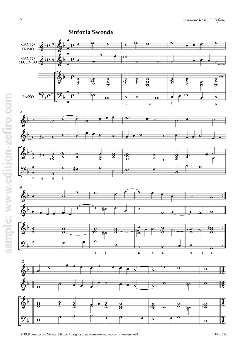Categories: Instrumental music, Violin. Tags: 1610, 2 violins + Continuo, 3 part, Early Baroque, EML, Italian, Salamone Rossi, Sinfonia, SS + Continuo.