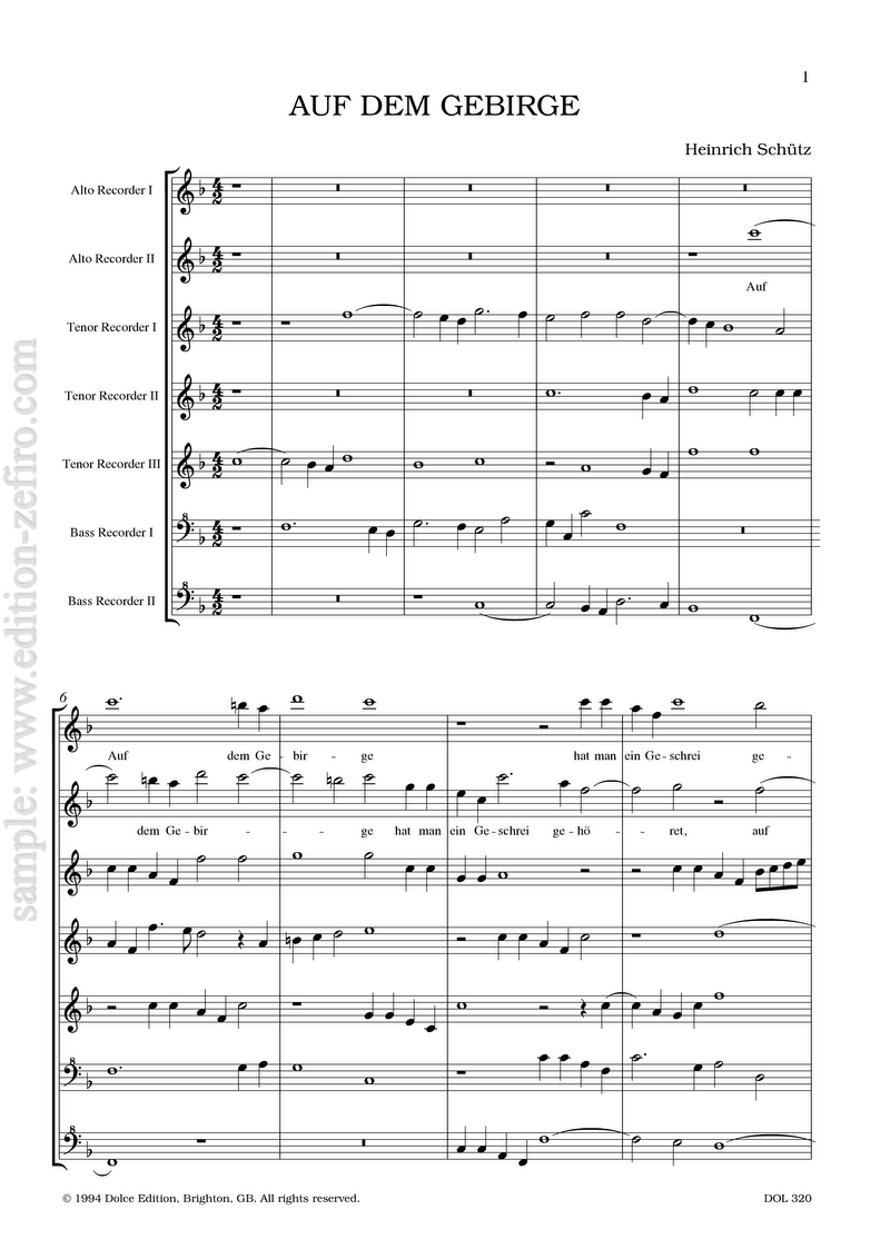 Category: Instrumental music. Tags: 1630, 7 part, AATTTBB, Early Baroque, German, Heinrich Schütz, Motet, Published 1648, Recorders.