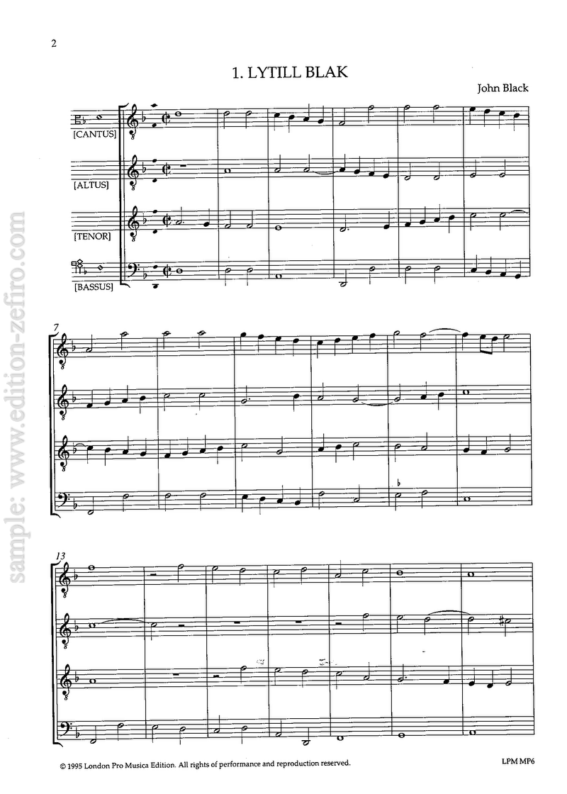 Although music in Scotland flourished during much of the 16th century in its Royal Court and in its Churches with their associated “Sang Schules”, only a very small quantity of music has survived from that period. This is particularly so in the case of secular part-music; fewer than three dozen songs, a handful of nutrimental fantasies, and around half a dozen dances are all that now remain from a once rich heritage. The blame for this can be cast quite squarely on the influence of the Reformed Church, which forbade the printing of any secular music. It was not until 1662 that the first book of secular music made its appearance, namely the Cantus, Songs and Fancies published by John Forbes in Aberdeen.