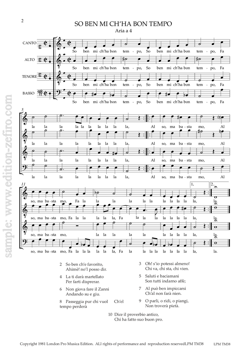 - So ben mi ch’ha bon tempo (Aria à4)