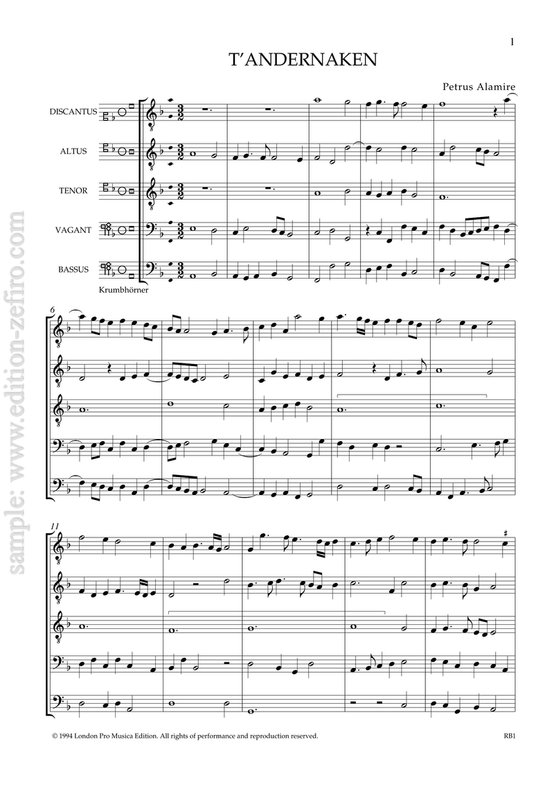 This fascinating 5 part setting of the Dutch popular tune T’Andernaken was originally in four parts. The fifth part was added later.
