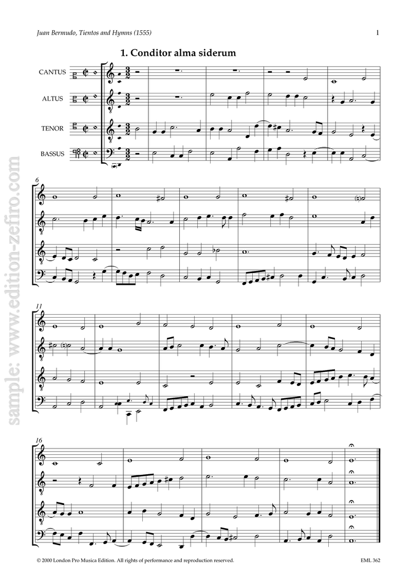 Bermudo: Tientos and Hymns à4 (1555)