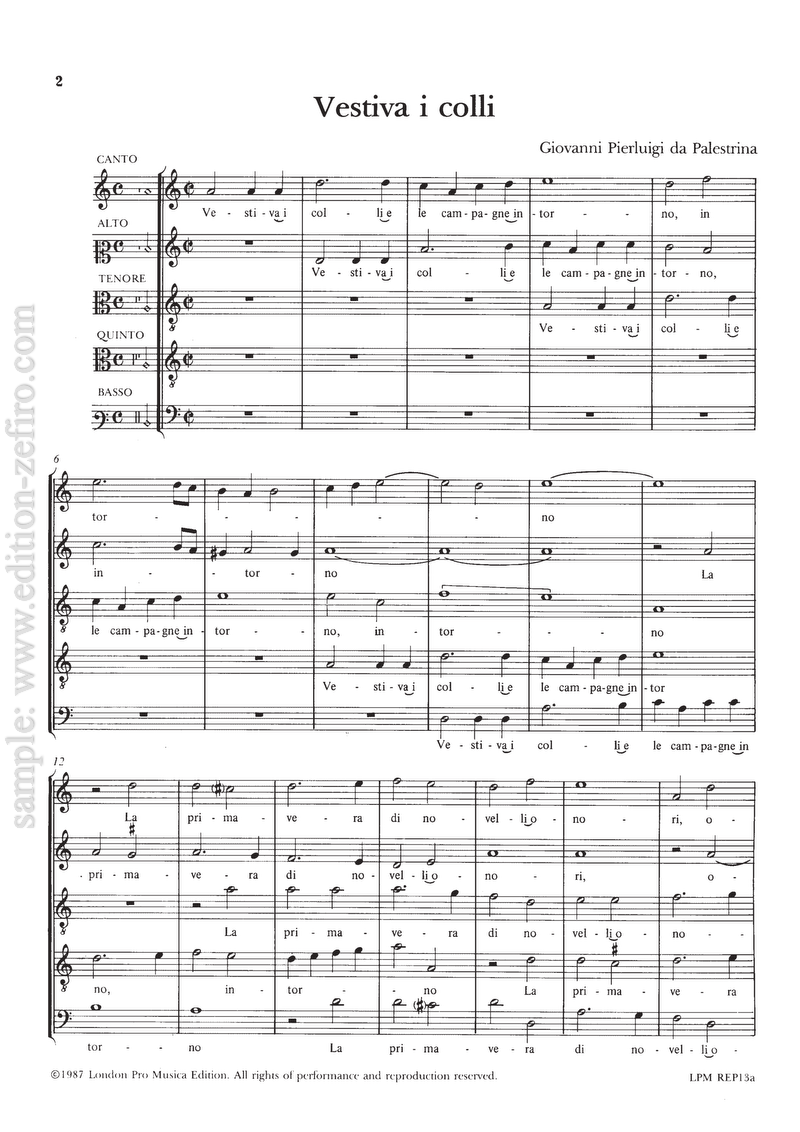 Palestrina’s Vestiva i colli was one of the most widely admired pieces of its time, and the subject of many re-workings.